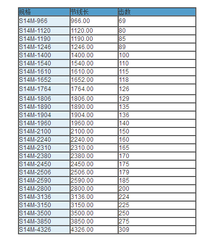 同步帶技術參數