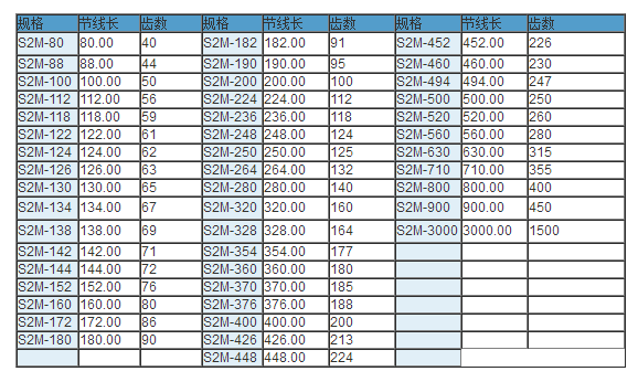 同步帶技術(shù)參數(shù)