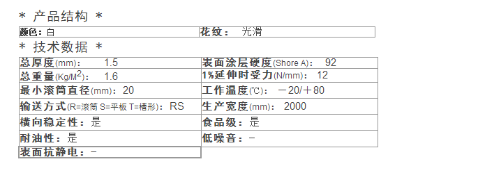 1.5白色PU輸送帶